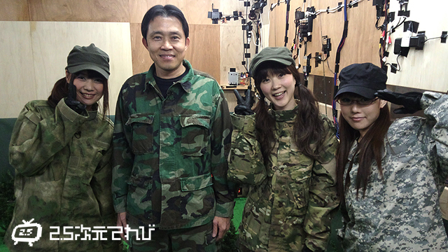 オタク情報バラエティ番組『2.5次元てれび』(http://www.nitengo.tv )の特集コーナーの裏側をおとどけ。 番組リポーターの綾瀬有さん、冨岡美沙子さん、持月玲依さんがラジコン戦車でリアルな 対戦を楽しめる「パンツァーウォリアーズ」に挑戦しました。